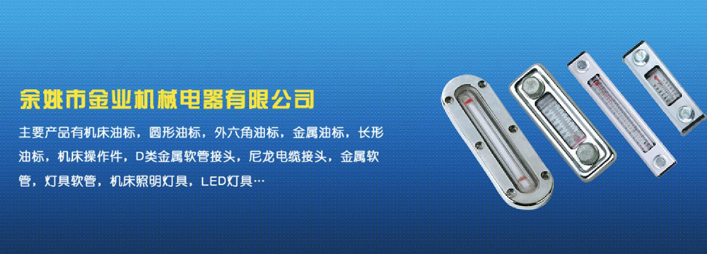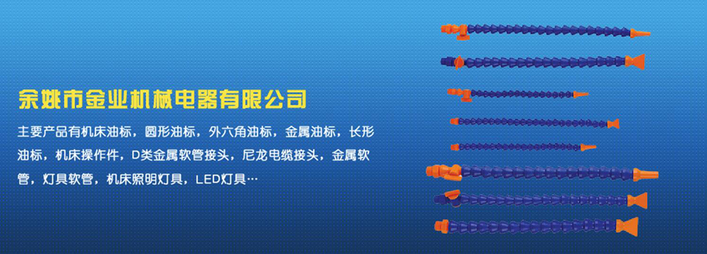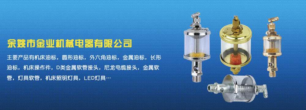 余姚市金業(yè)機械電器有限公司主要產(chǎn)品有機床油杯,圓形油標(biāo),外六角油標(biāo),金屬油標(biāo),長形油標(biāo),機床操作件,D類金屬軟管接頭,尼龍電纜接頭,金屬軟管,燈具軟管,機床照明燈具,LED燈具,DGT型線路軟管防護套,TL型鋼制電纜手軌,電纜尼龍拖鏈,可調(diào)塑鋼冷卻管等產(chǎn)品,規(guī)格齊全,全部自制。望國內(nèi)外客戶前來考察:共同發(fā)展…